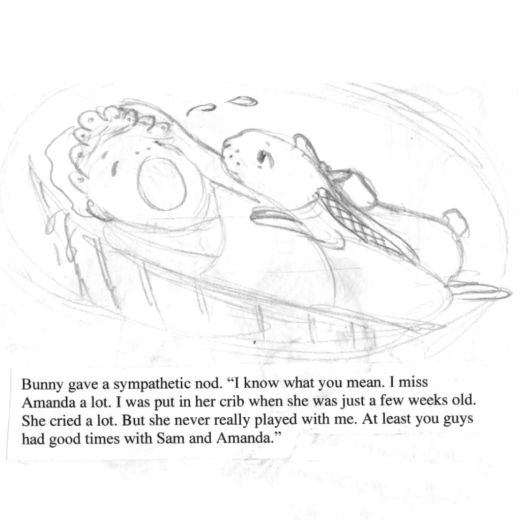 This small vignette I illustrated while my daughter was a baby, so the timing worked perfectly for such job. Here is also a page from the dummy book, with the text attached on paper over the sketch. I like it playing with the composition using small pieces of paper.