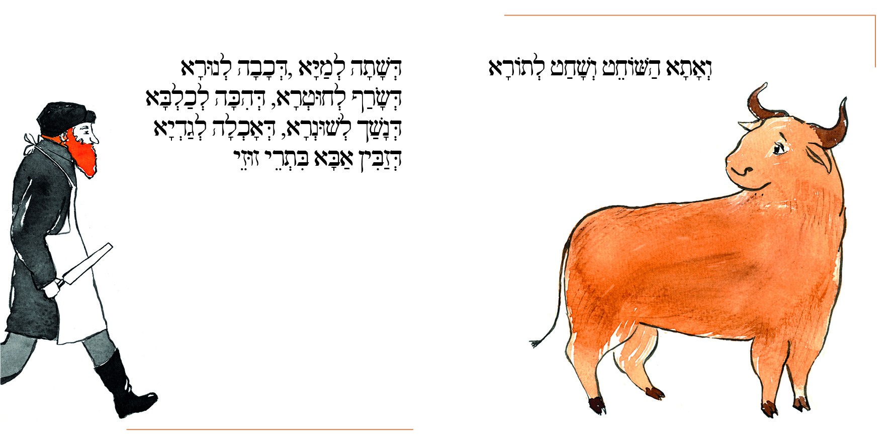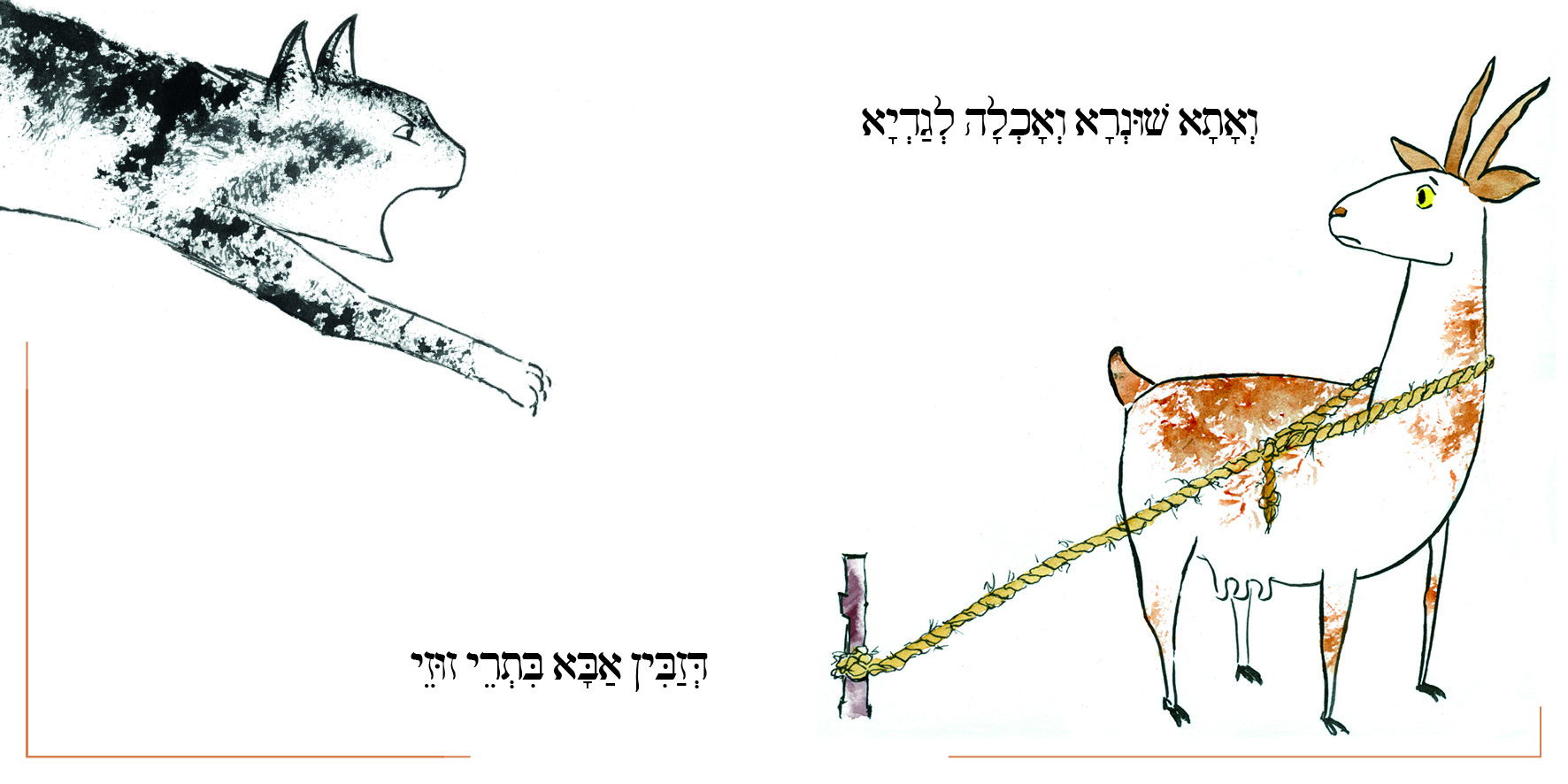 Chad Gadya (Aramaic: חַד גַדְיָא chad gadya, “one little goat”) is a cumulative song in Aramaic. It is sung at the end of the Passover Seder. More info in Wikipedia.